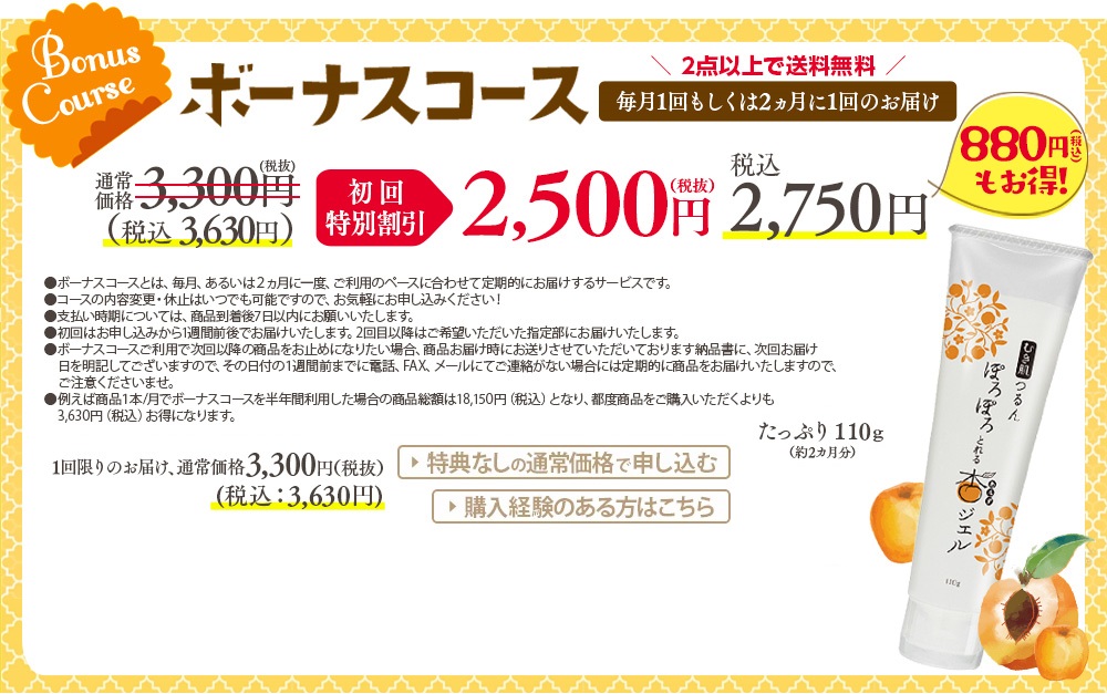 公式サイトの定期便「ボーナスコース」なら、通常価格3,630円のところ初回2,750円(税込)で購入できます。