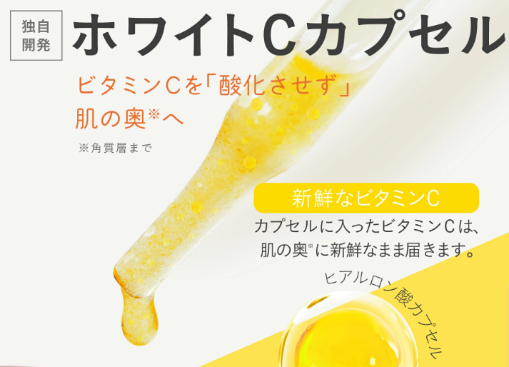 この技術によりビタミンCが酸化せずに肌の奥まで届き、本来の力を最大限に発揮できる仕組みになっています。