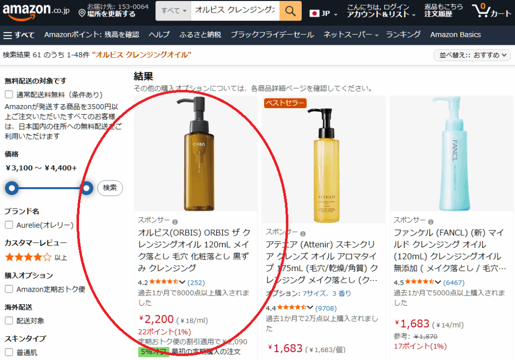 ORBIS公式ショップが出店しているので定価の2,200円で購入できますし、何より転売品や偽物の心配がほとんどありません。