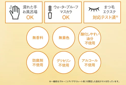 一般的なまつエク用のグルー(シアノアクリレート系)に対応しているので、安心して使えます。