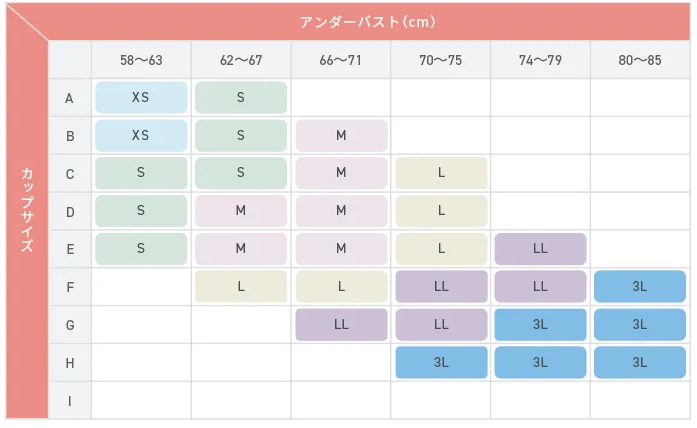 基本的には公式サイトに掲載されているサイズ表(トップとアンダーの数値)を基準に選びますが、迷った場合は「アンダー」を優先して合わせるのが一つのポイントです。