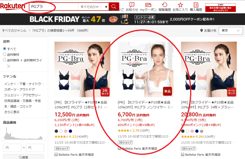 普段使っている楽天やAmazonでもPGブラは購入可能ですが、公式サイトに比べるとあまりおすすめできません。