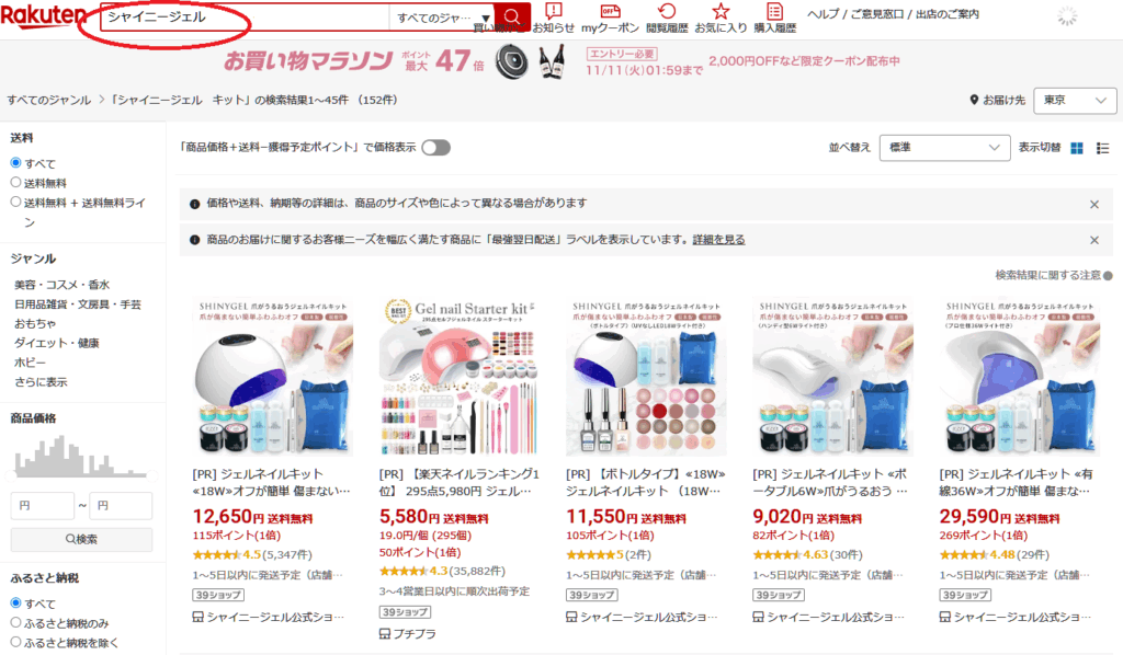 楽天市場やAmazonなどの通販サイトでシャイニージェルを購入する際は、公式ショップから購入することが最も重要です 。